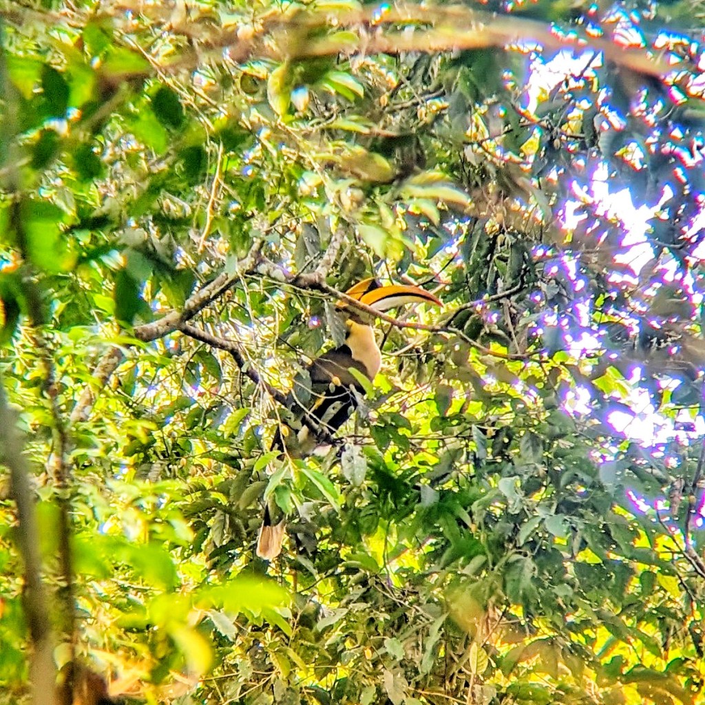 We continued on, and then we heard the distinctive call of hornbills, a bit like a dogs bark. We saw a pair feeding in the trees, they were so big! And so beautiful!! They were amazing to watch through the trees with the binocs, but hard to take photos of…