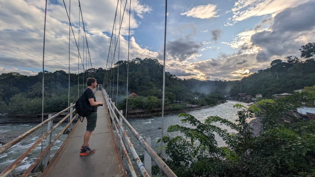 The last day we just chilled, the trek wasn’t that hard, but the humidity made it gruelling, and we were tired, likely dehydrated and aching. So we rested, did some much needed laundry, and went for a dip in the river, zig-zagging along all the bridges again.