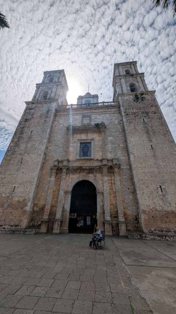 We got the boat back from Cozumel in mid morning, before walking back through Playa to catch an ADO bus to Valladolid. The “bus” wasn’t quite a bus and was more of a minivan. We were on the back row – which was 4 seats and there definitely wasn’t enough space! We were squished the whole way!