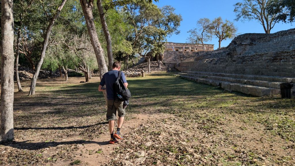 The journey to Uxmal was 1.5 hours but we checked the times for the return once again… Only 3 and 5pm!! No 12:30pm bus apparently… That meant we’d be here about 8 hours!!! It’s a good job we packed TWO chocolate spread sandwiches… 🤦🏻♀️