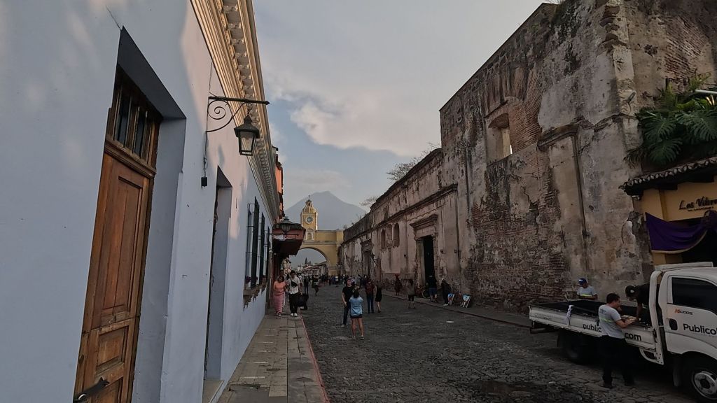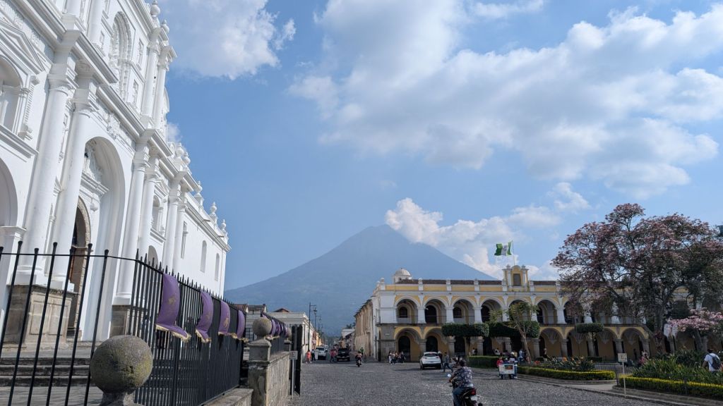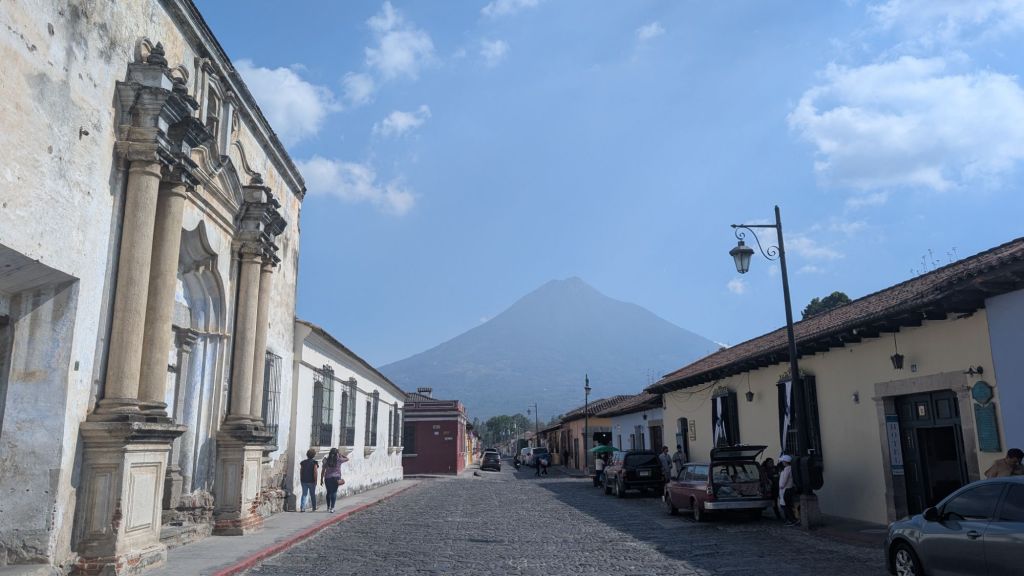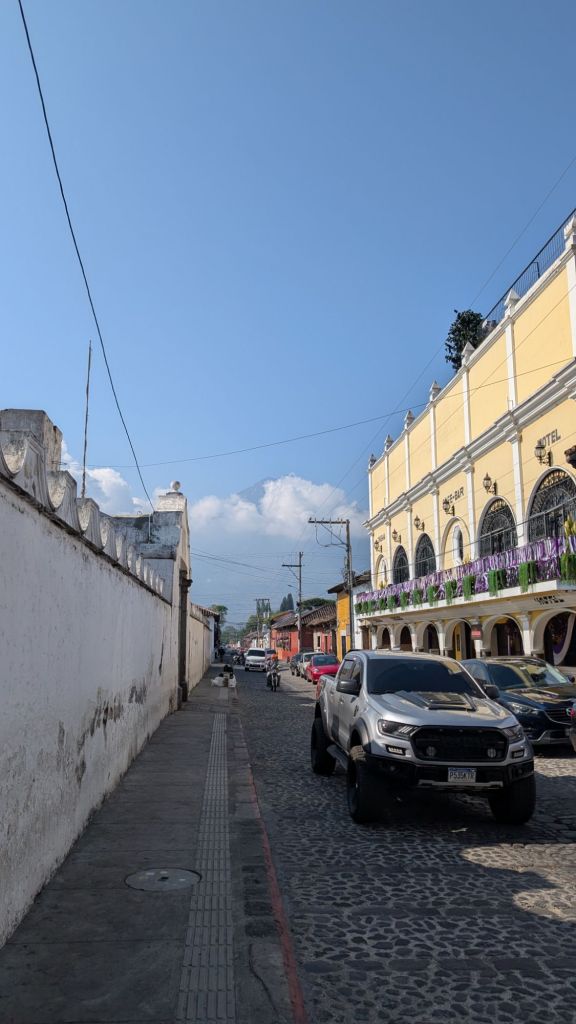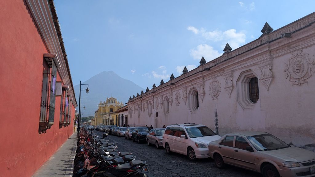 It’s also surrounded by volcanic peaks, and the 3 most prominent to the south are Agua, Fuego (which is very active and erupted just a couple of weeks ago!) and Acatenango. This gives Antigua an iconic skyline (if you can see them through the haze and clouds, that is!). There seemed to be a microclimate here, and the clouds would roll in during the day obscuring the Volcanoes, but it was usually clear in the mornings and late afternoon.