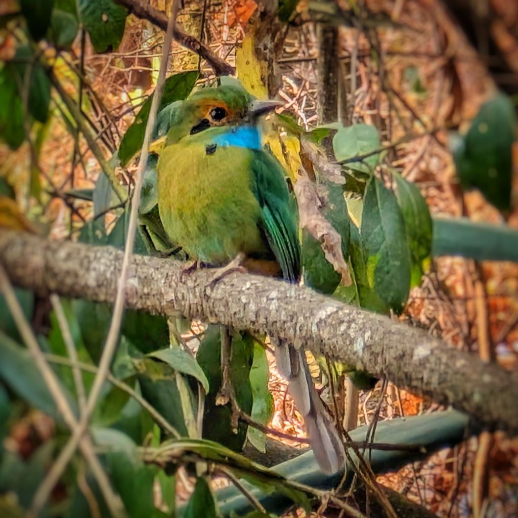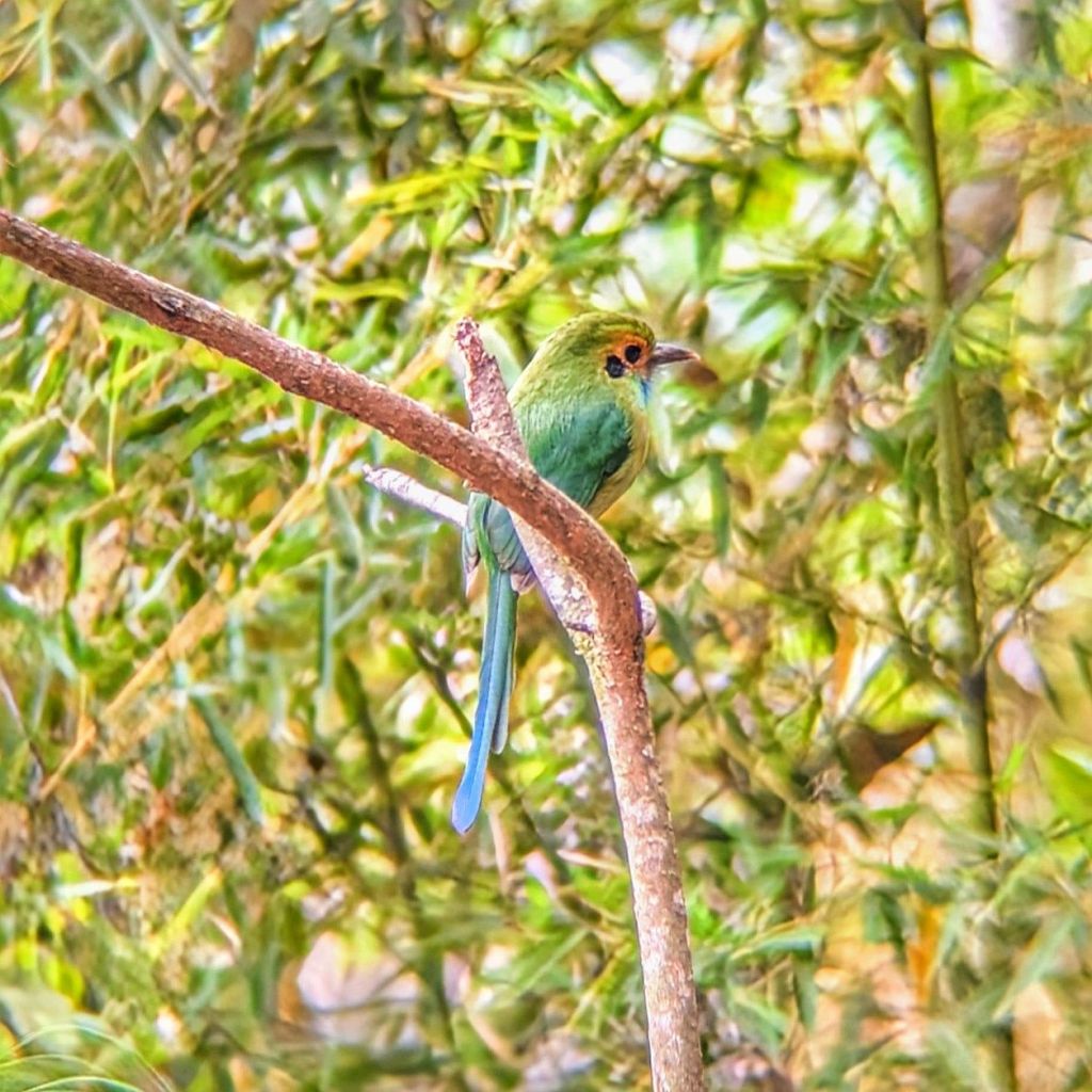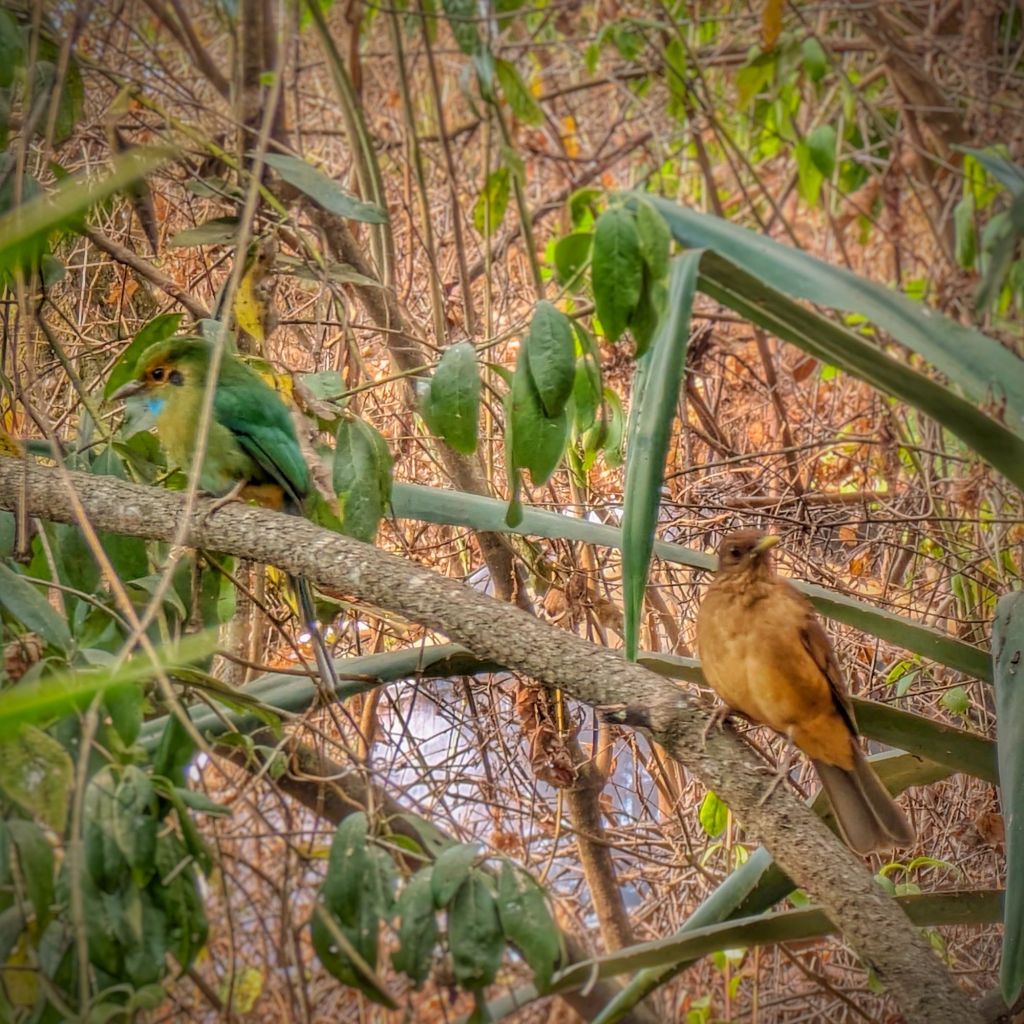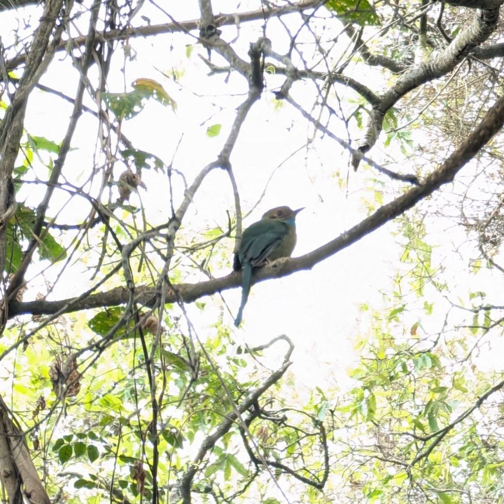 I also saw them being quite curious and checking out other birds. During one afternoon when I was following one Motmot through the trees, I saw it land on a perch next to another bird, on quite a few occasions. One time, it landed next to a thrush, which startled the bird, so it hopped to a lower branch. But the Motmot followed it and jumped down onto the same branch as well. They sat next to each other for a while, the Motmot all the whole wagging it’s tail 🤣