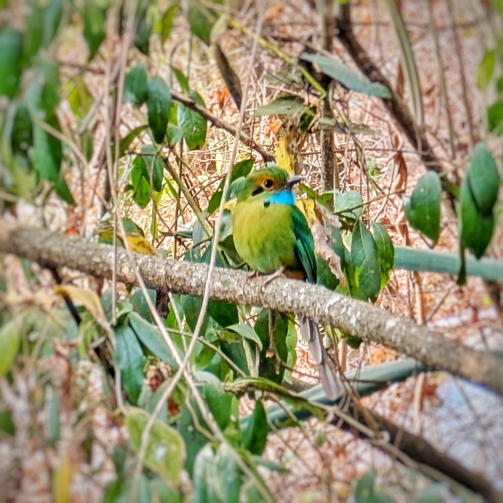 We spent our days chasing hummingbirds and woodpeckers, and mostly just chilling and chatting to the Motmots. We observed some rare behaviour too actually (I searched it afterwards)…. Motmots are actually pretty unique little characters, they are fairly large birds, and don’t tend to flit about much. They build burrows in the soft soil banks and perch in the mid-canopy, sitting quite still, surveying their kingdoms haha. So they are often overlooked or hidden in the trees and people don’t notice them much. But when you do, they are so beautiful, usually bright greens, oranges and blues, with black eye patches and flashes of turquoise. Strangely, they are bright and colourful, yet also blend seamlessly with their environment…. Most Motmots also have unique tail feathers, which end with a racquet shape, but these Motmots here didn’t have that – these were blue throated Motmots.