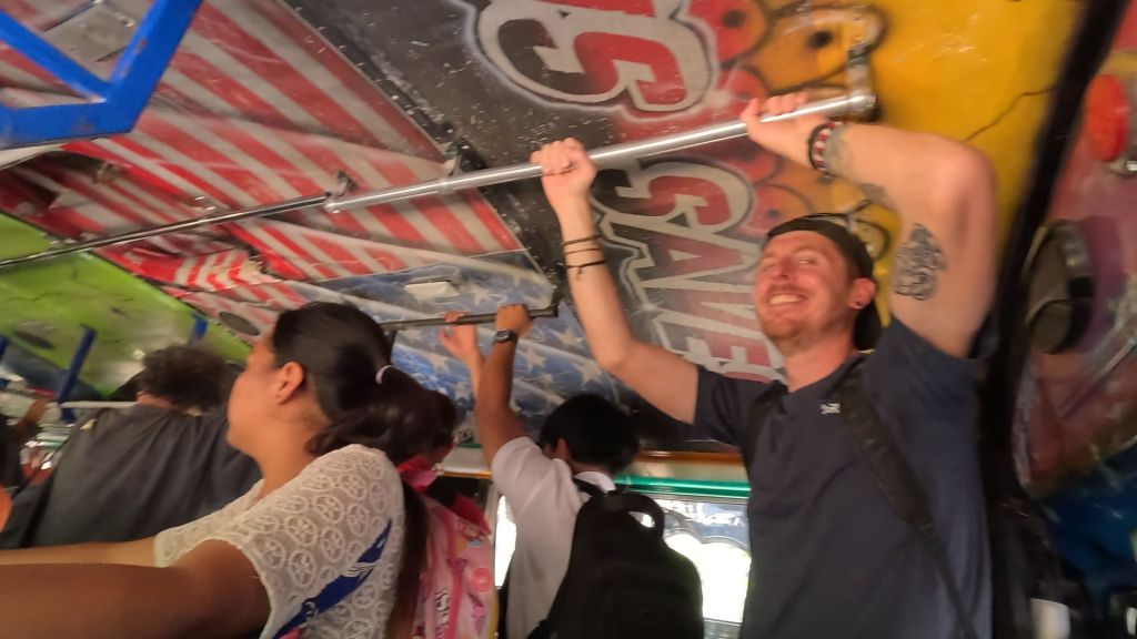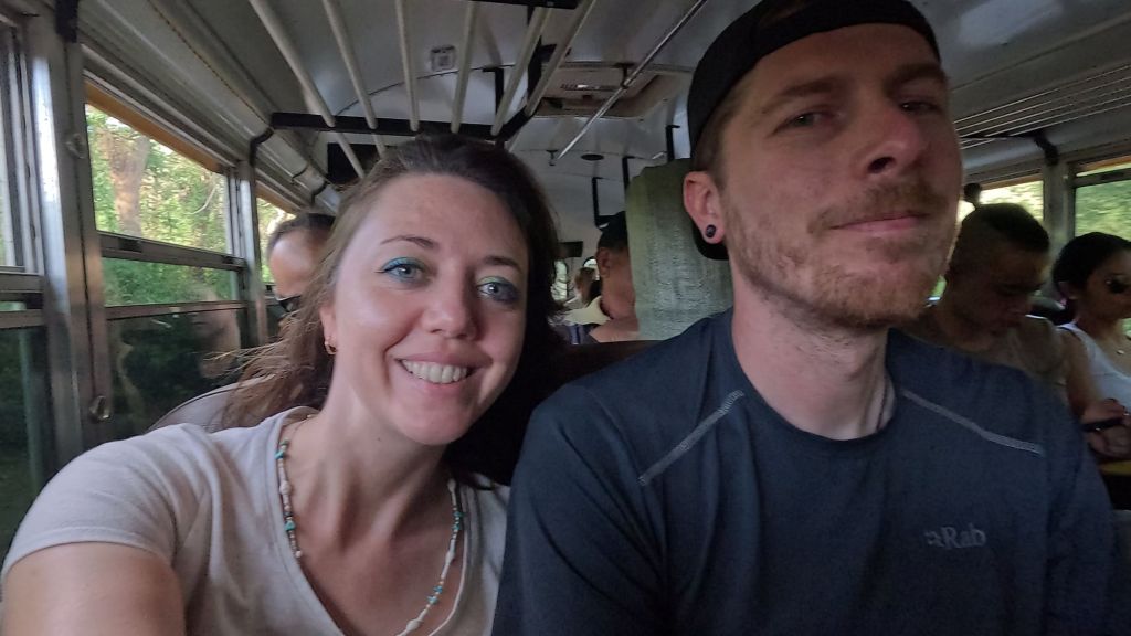 Other passengers helped us with our bags and once they were in the overhead space it wasn’t too bad… But the doors couldn’t close and Dave was practically hanging out of the bus 😂