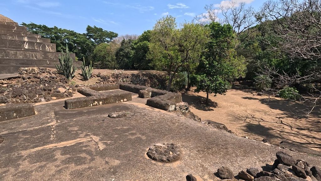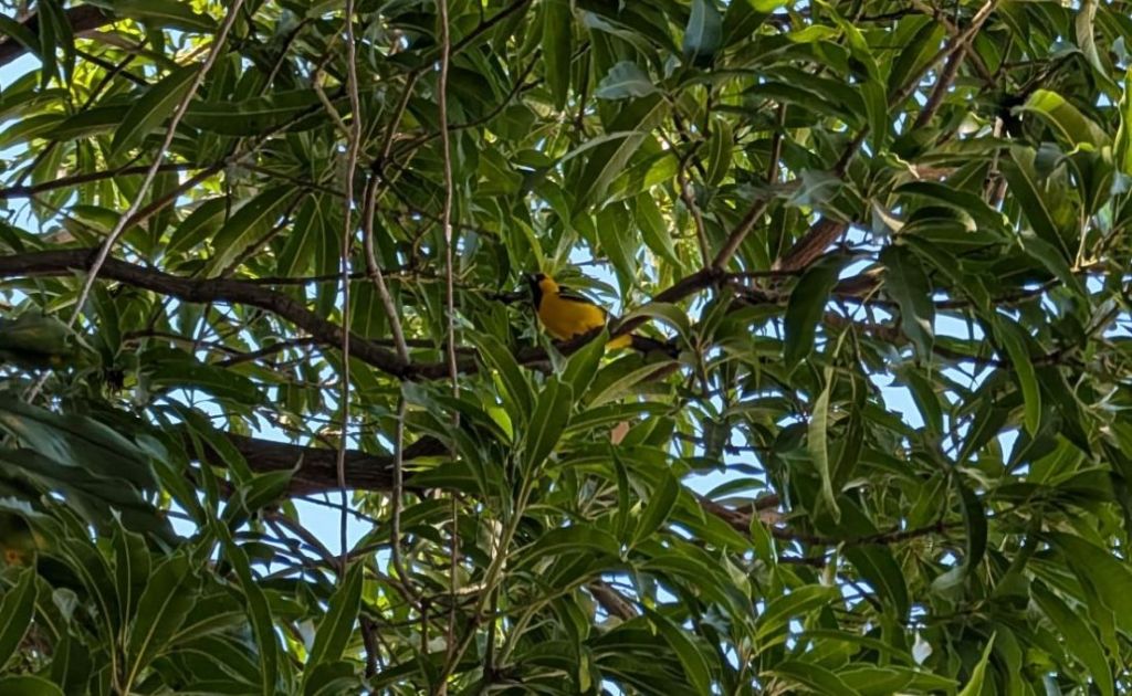 The ruins were cool, but they’ve been heavily restored and covered in layers of concrete to “protect” them. By the entrance we saw a yellow oriole species (the spot-breasted oriole). Then we headed behind the temples and pyramid into the dusty forest.