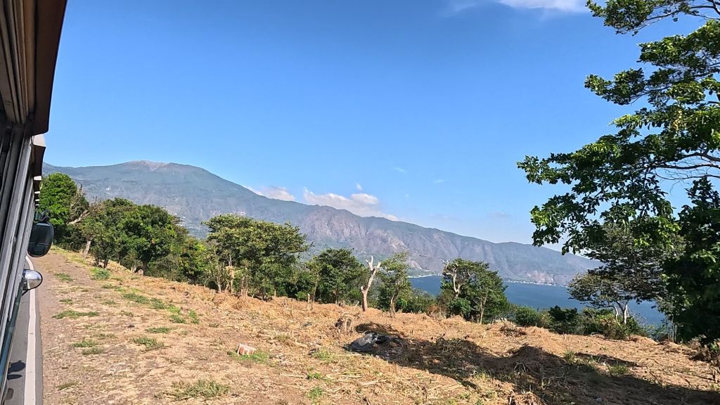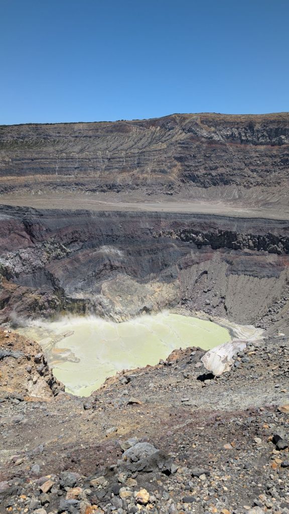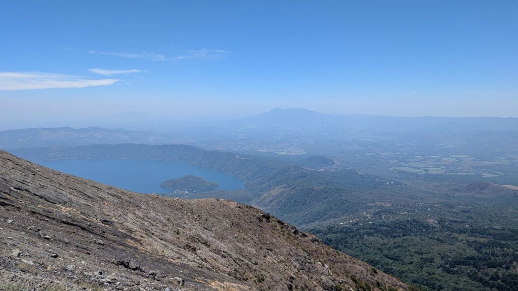 The walk was also not that challenging, but in the sun and heat we got very sweaty and got to the top absolutely soaked in sweat! The views were worth it though. On one side you can see down into the caldera which has a steaming sulphur lake in it, and eery green colour, and on the other side you can see lake Coatepeque, and another volcano Izalco, plus you could even see all the way to the Pacific ocean, and we could even make out the waves hitting the shoreline, it was pretty amazing!
