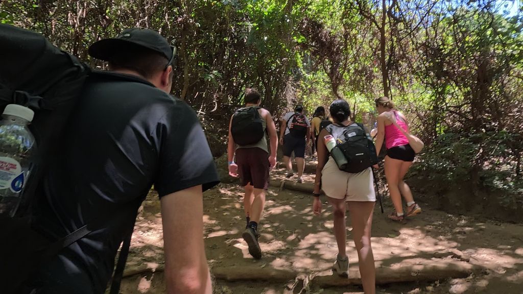 We walked along a forested path to the park entrance, we seemed to be taking the back route, and saw no one else on this path (which seemed dodgy if it was the main pathway to the park). When we arrived at the actual entrance, it was teeming with locals arriving from another path and here we had to pay the actual official $3 entrance…