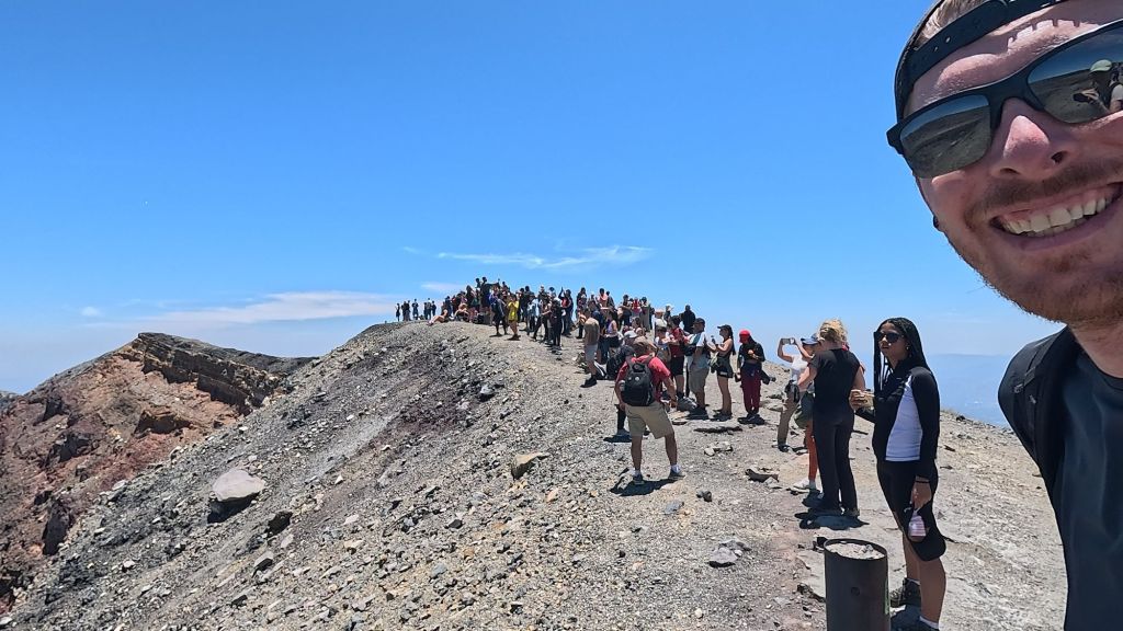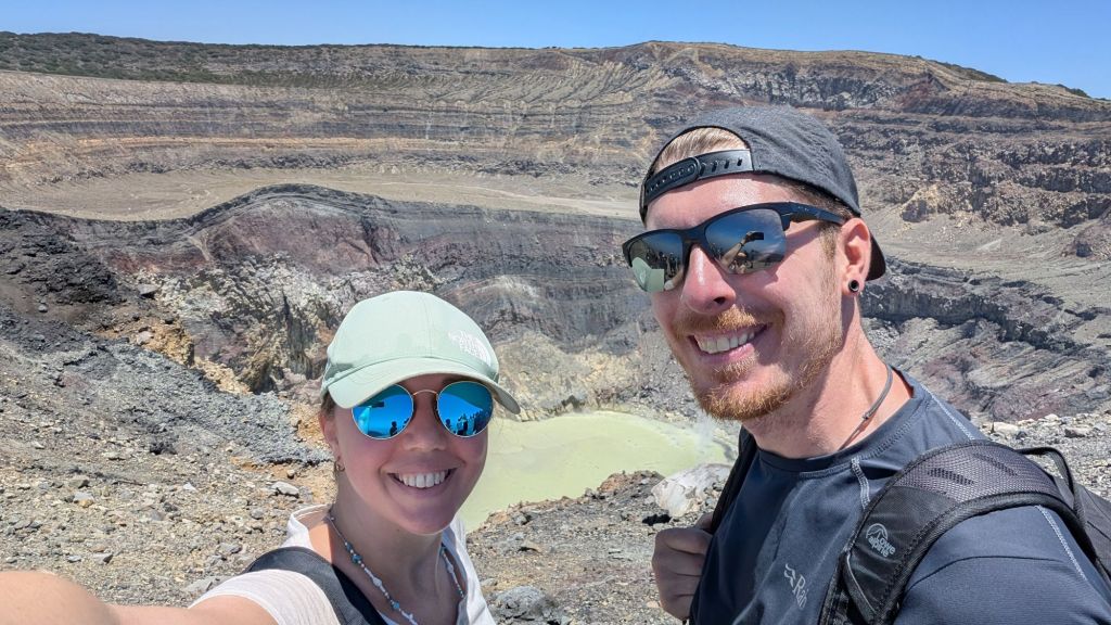 Then we think we got scammed a bit… We heard that the bus drops you at the park entrance where you can get a guide to walk up to the crater rim (which according to other tourist blogs is ‘mandatory’). But the bus stopped outside a private carpark and we were told to get off. All the tourists got off here and asked to pay $0.50 just to enter the car park area… A guide greeted us (with an official lanyard) and asked us to pay $4 each for a guide for the whole group that just came off the bus. We’d read it was free or $1, some people said $3 on their blogs… So I was pretty confused and said to Dave maybe we were being scammed for extra, but every one else paid without so much of a murmur, I didn’t want to kick up a fuss….