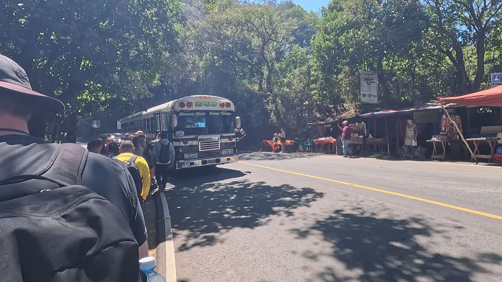 From Juayua we got the public bus to Santa Ana, which is direct for just $0.70 each. However we had to wait a while, we heard the bus goes every hour at 10 past, so at about 11am we headed outside the hostel. We were on the street where the bus would go down, turn around at the main square, then come back up…