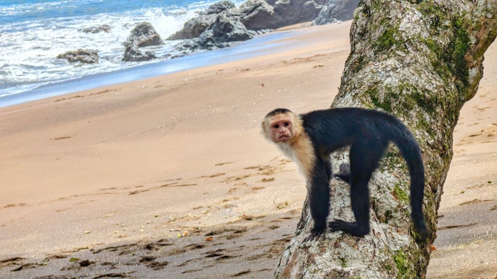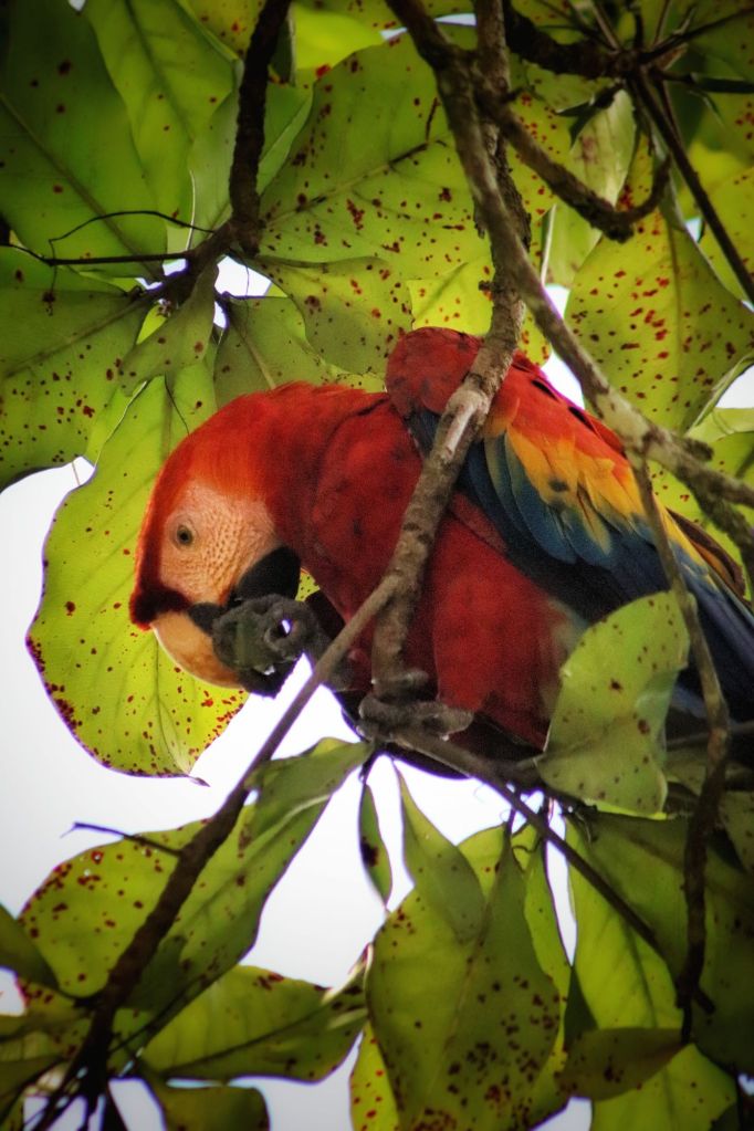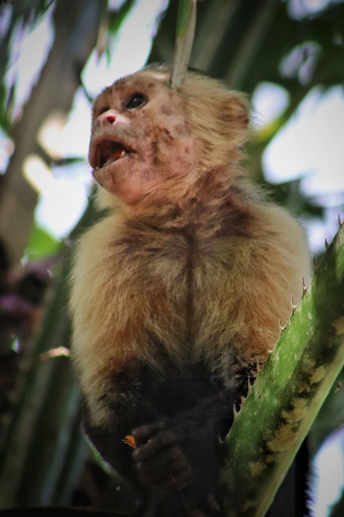 On our first day here we got up early to have coffee on the balcony and watch the animals, before walking down to the beach and the along the coastal walk here. We walked for a few hours and got as far as Playa Cocolito, where we saw a troop of white faced capuchin monkeys and tonnes of scarlet macaws really close! We considered continuing further, but it’s so hot and humid here, we were both completely soaked with sweat and already out of water trying to stay hydrated. So we turned back.