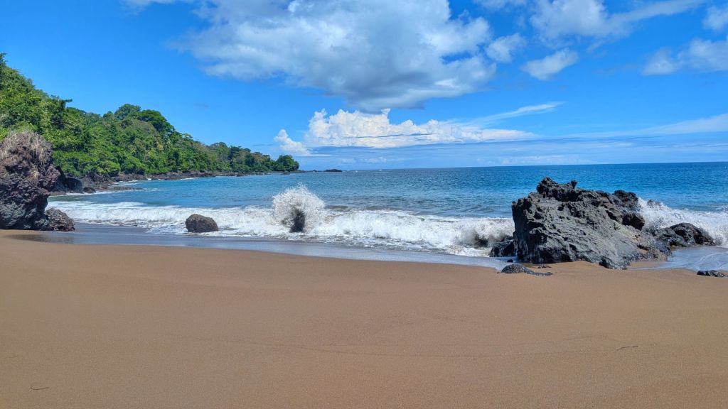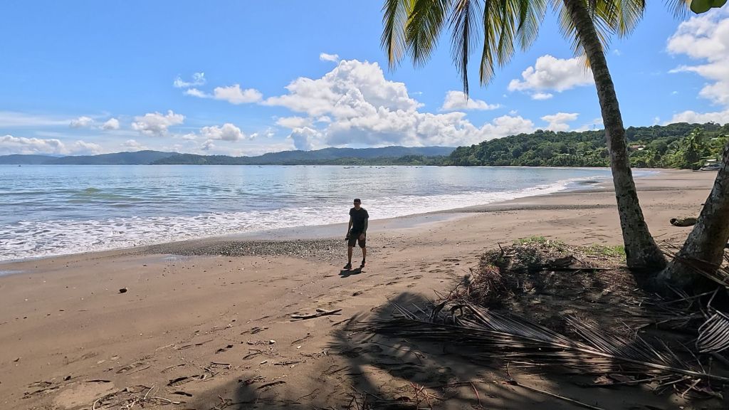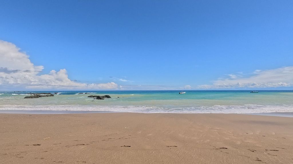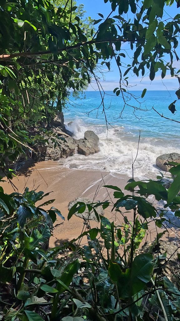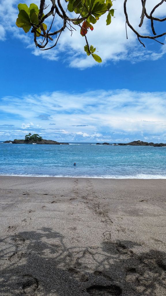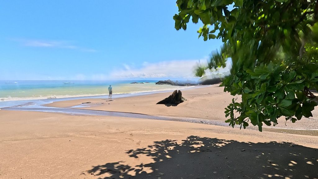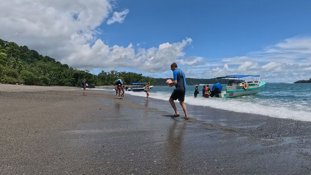 After the break we tried the water again and it was a bit better but barely… So we decided to call it a day. The guide and boat captain offered to take us to Playa Josecito instead, apparently the most beautiful beach in the region, so we all agreed and drove over to there instead. We enjoyed playing in the calm water and watching the macaws in the trees. It was a lovely beach, then we headed back around 2pm and landed back at Drake just before the afternoon rains started. Perfect timing!
