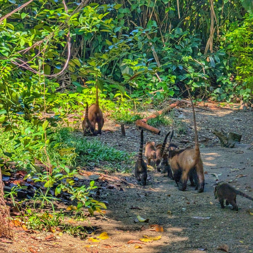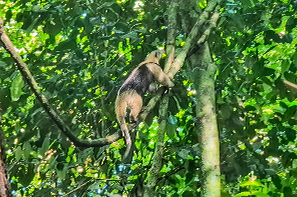 Still, we did get to see a lot, including spider monkeys, squirrel monkeys, crocodiles, terrapins, a black-headed antpitta (quite a rare and shy bird), a tamandua (an anteater basically – and the main animal I’d hoped to (realistically) see today), a pair a Tapirs sleeping (a mum and baby), lots of black throated trogons, some great curassows, and a common potoo too (which was unexpected, and a bird I’d wanted to see for a long time!), lots of agoutis and a huge family troop of coatis. It was great, just rushed, busy and not really feeling like a real wildlife experience, more of a tick-box exercise in seeing animals… What a shame.