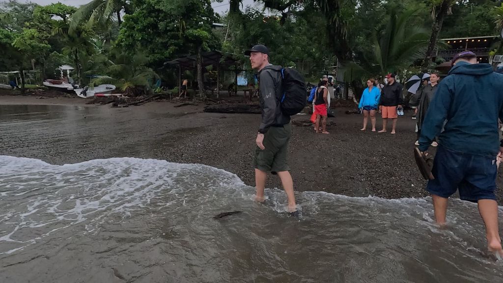 To get here we had to get in a boat… again – Dave was not happy haha, but the waves weren’t as bad this time. It took 2 hours in a boat along the coast until we reached Sirena beach and another wet landing and short hike to the entrance.