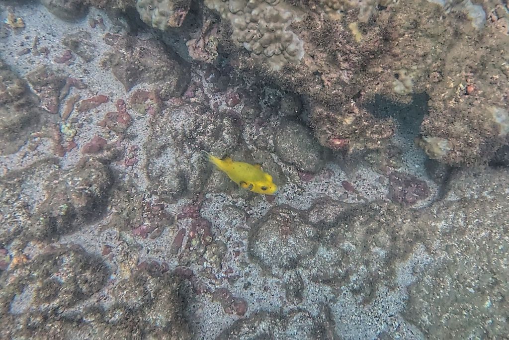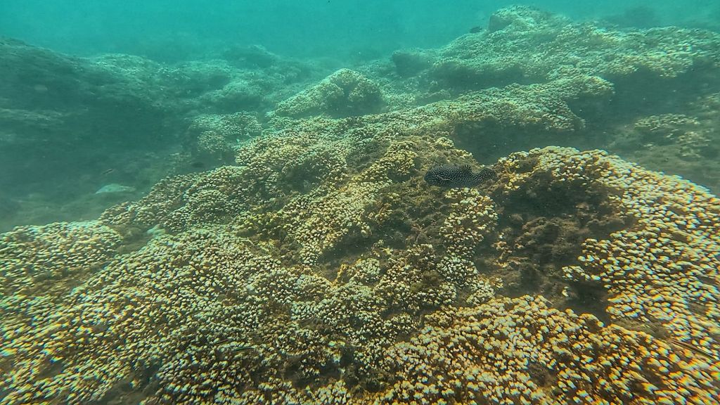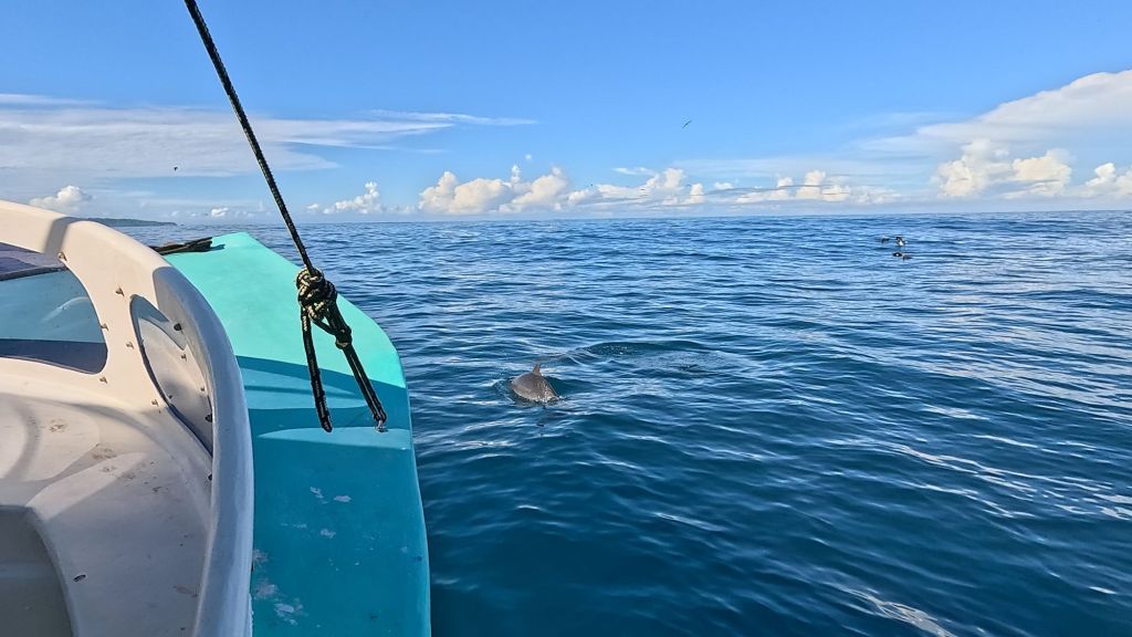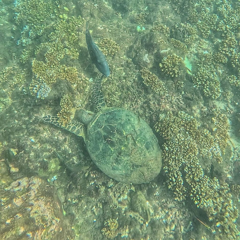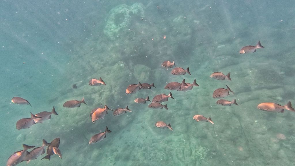 We arrived at the island and the dolphins were still near, the guide jumped in quick and I followed him quickly but we didn’t see them whilst we were snorkeling. In fact we didn’t see much, sadly it was a bad visibility day and we could only see a few metres. 😔 It always looks better on the GoPro pictures, but with our eyes, it was terrible, and we only really saw what swam close to us.
