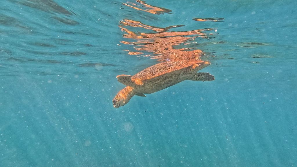 We saw quite a lot of turtles though, both loggerheads and green turtles, and a few yellow pufferfish (we could only really see the bright coloured fish!) but in this visibility and sharks would have been too well camouflaged, especially the white tip and black tip reef sharks, there’s no way we’d have been spotting them.