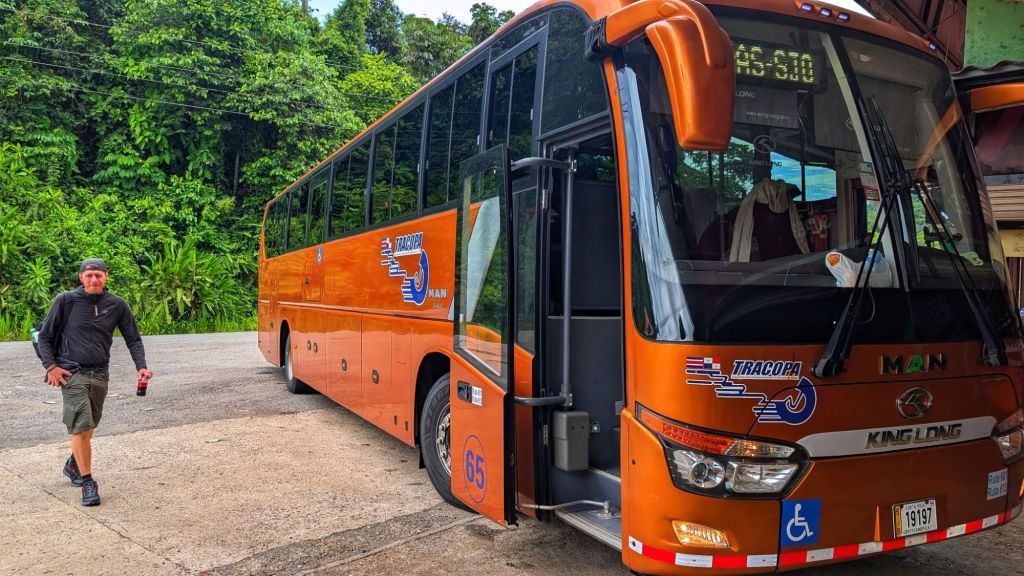 We told the driver in broken Spanish that we were going to Palmar Norte and currently didn’t have enough cash for a ticket. But we could withdraw some along the way or pay by card. He understood and let us on with no issues whatsoever! What a guy! We were now on a direct bus to Palmar Norte, no stress, perfect!
